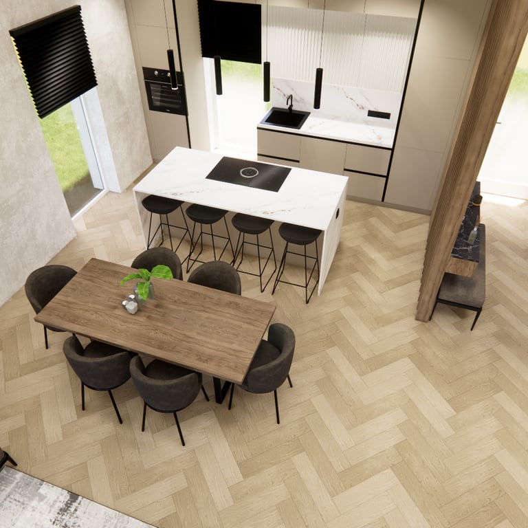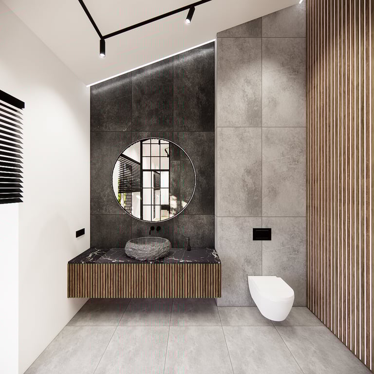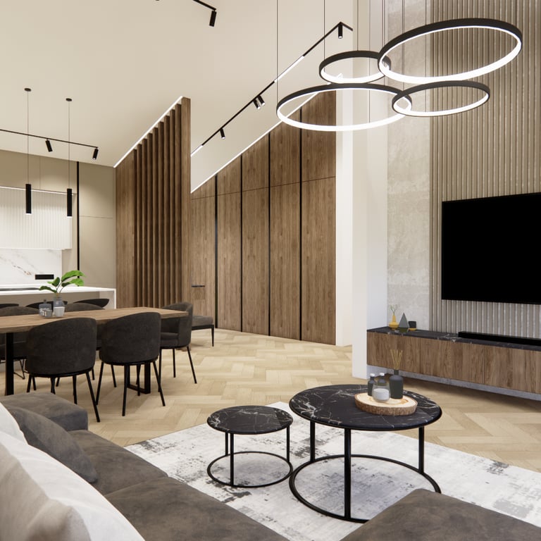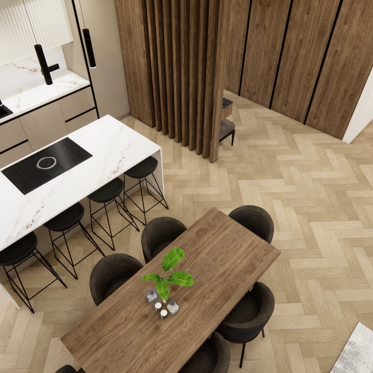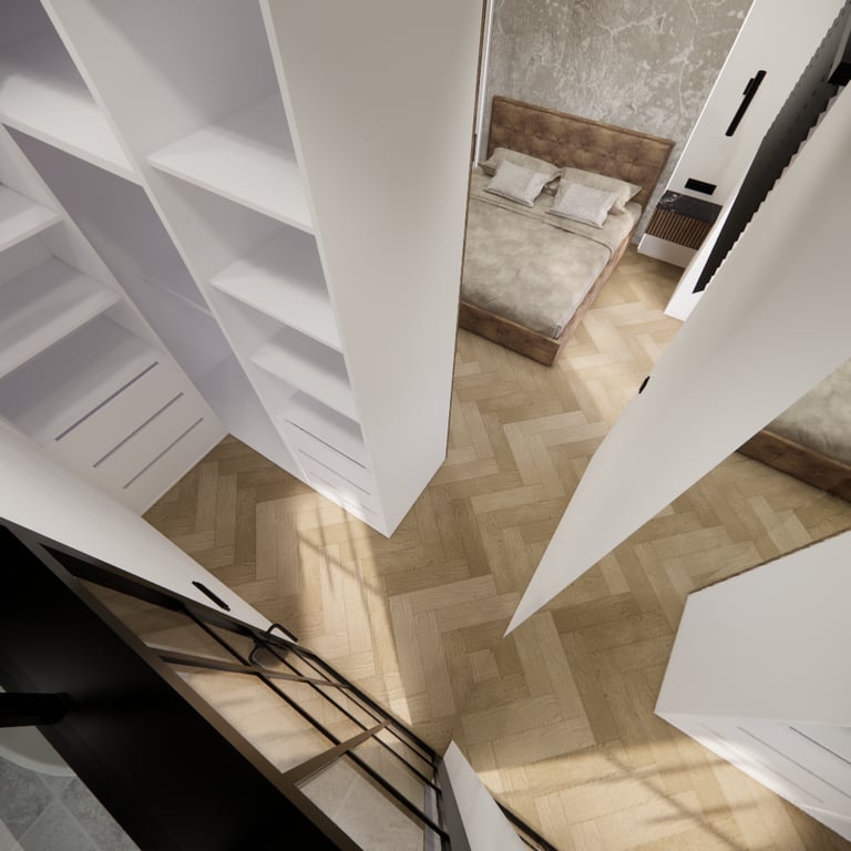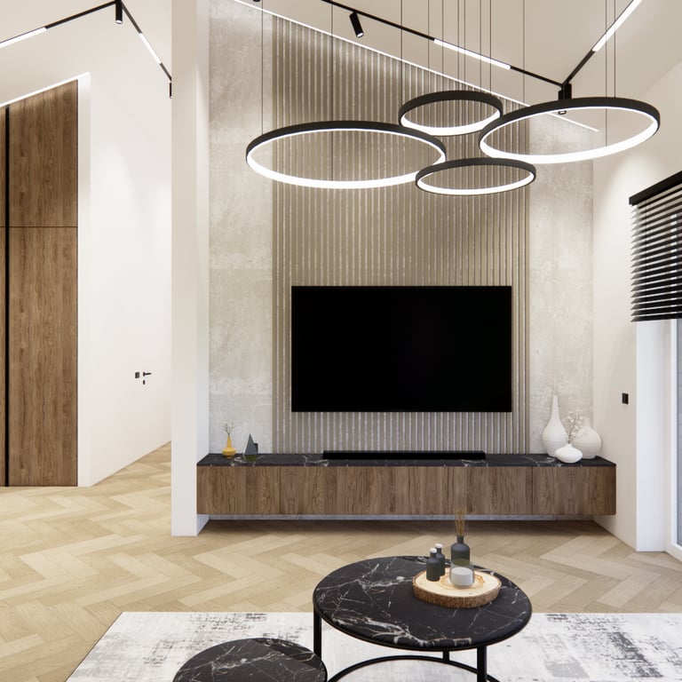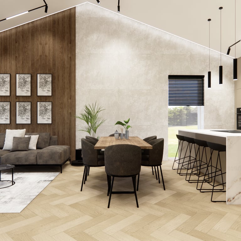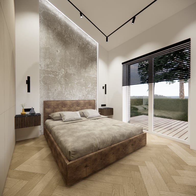 Šiame projekte siekėme sukurti kuo atviresnes ir jaukesnes erdves. Kadangi pirminis namo išplanavimas buvo daug uždaresnis ir pagrindinės namų erdvės būtų buvusios "užspaustos" perplanavome tiek svetainės virtuvės bei holo erdvę, tiek miegamuosius. Atsisakėme uždaro holo, jį nuo virtuvės atskyrėme tik lengva ažūrine pertvara. Padidinome svečių, vaikų san. mazgo ir katilinės patalpas. O atsisakius vieno iš papildomų kambarių suformavome privačią pagrindio miegamojo erdvę su atskira vonia bei drabužine.