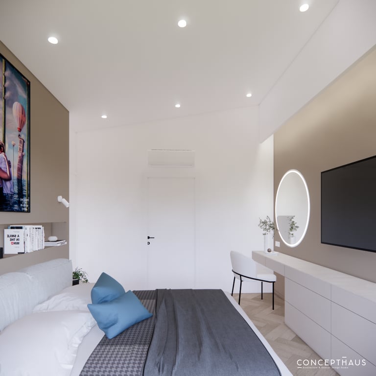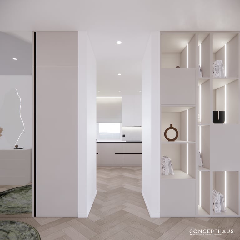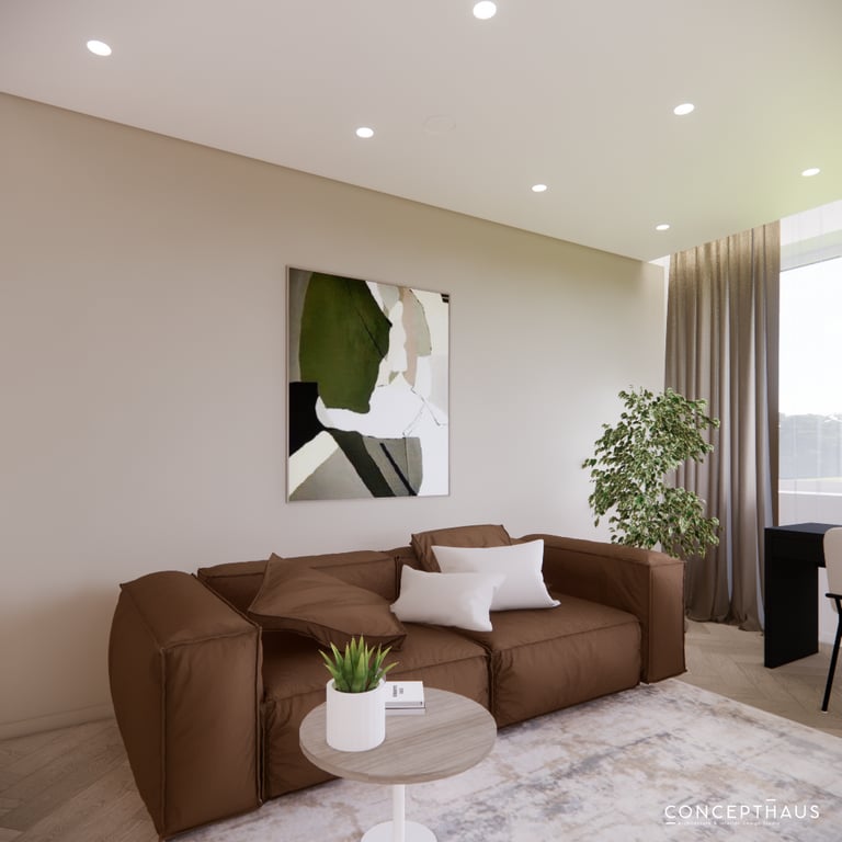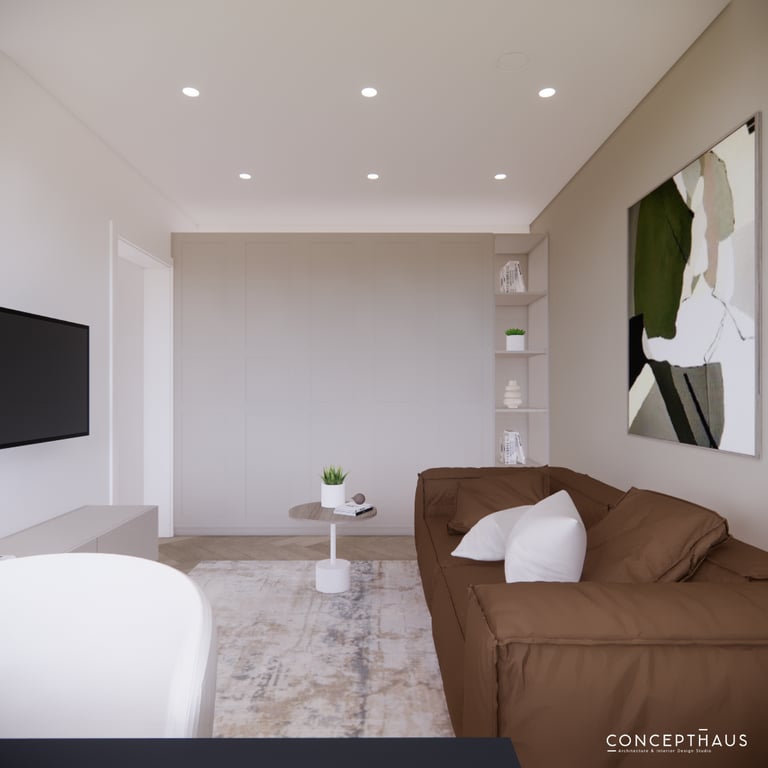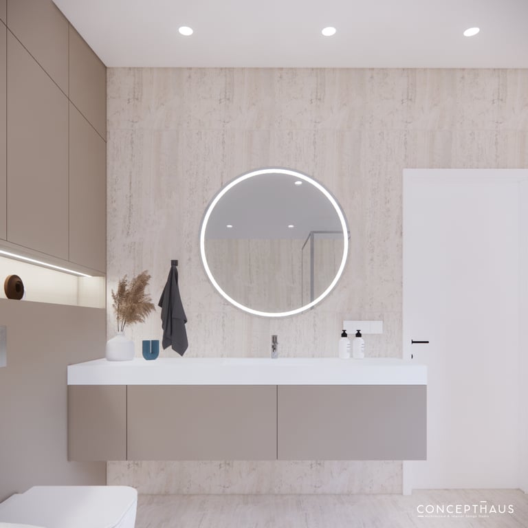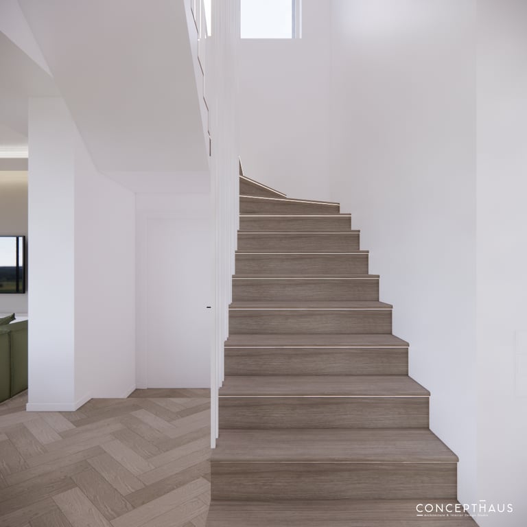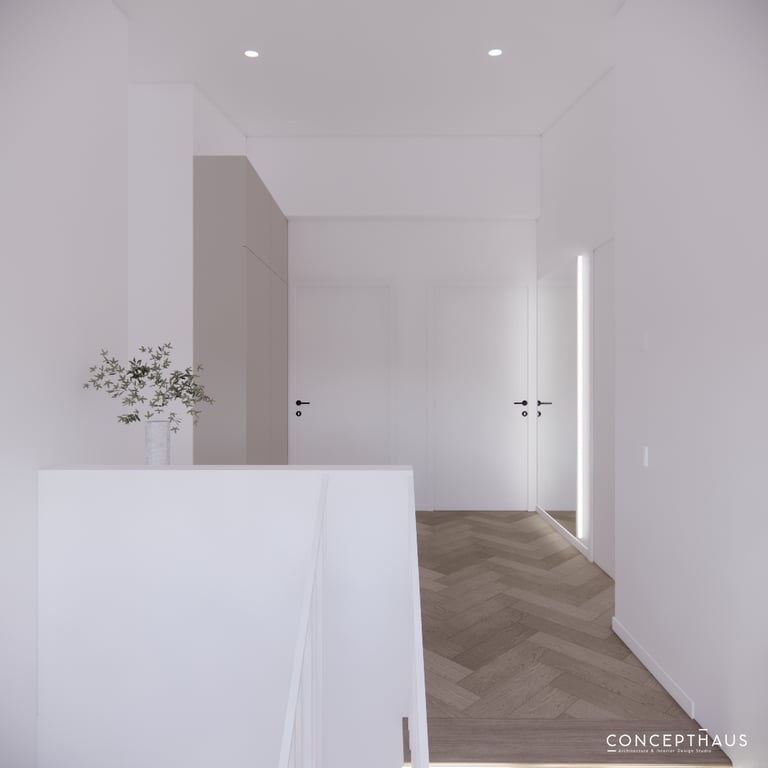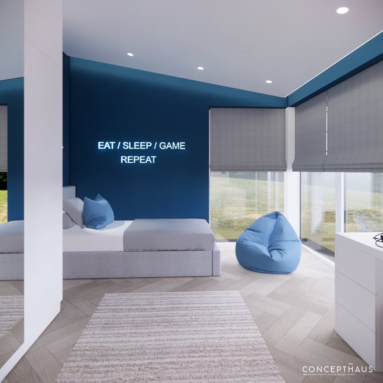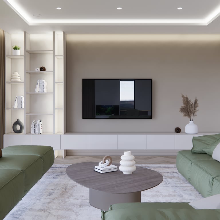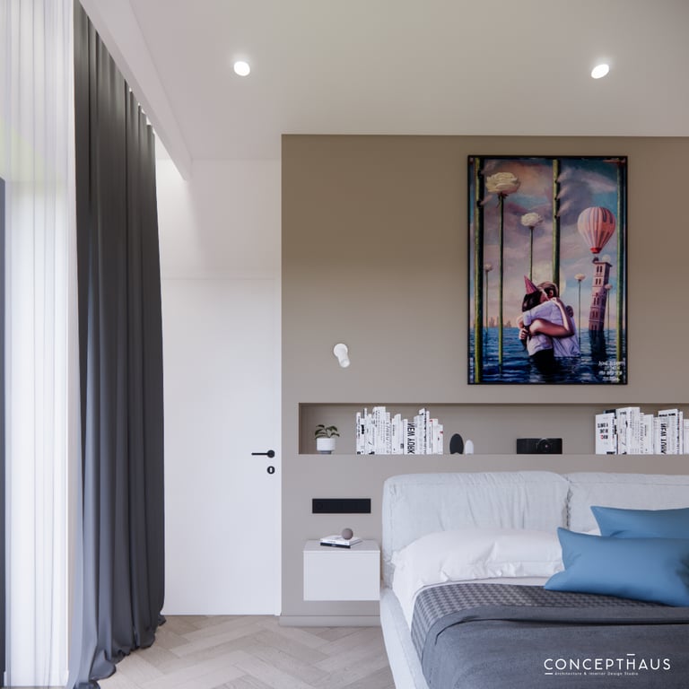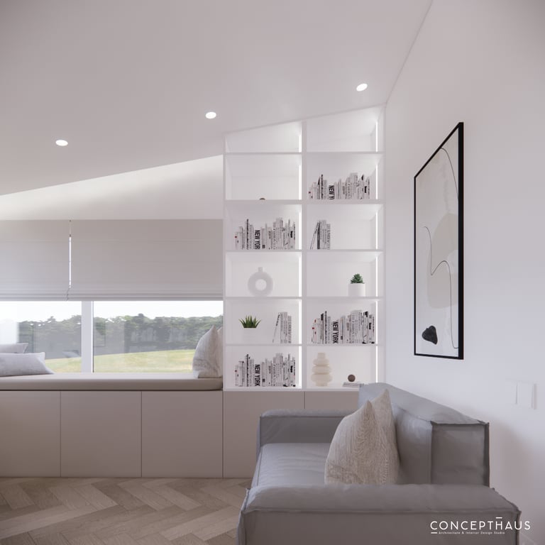 Jaukių, šviesių spalvų interjero projektas, kuriame dominuoja žalių bei rudų spalvų akcentai. Užsakovų noras buvo kiekvienoje namų erdvėje įnešti šiek tiek skirtingų spalvų. Interjeras sukurtas šeimai su dviems vaikais, pagal kurių poreikius bei pomėgus buvo suplanuoti jų spalvingi kambariai.
