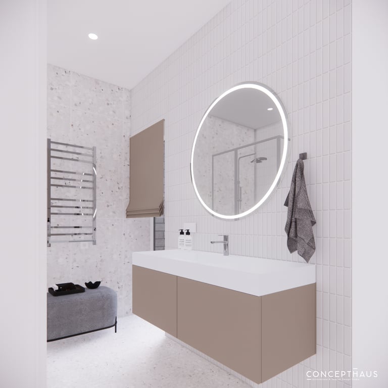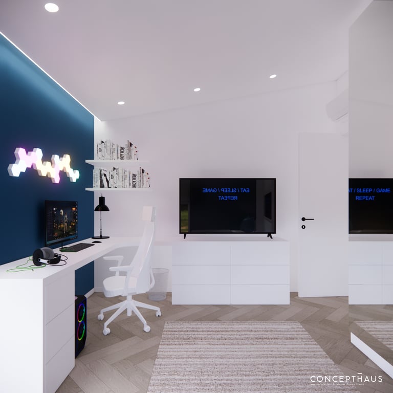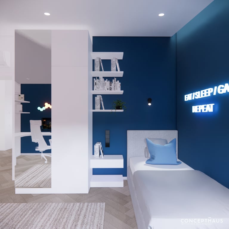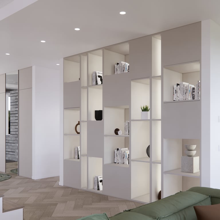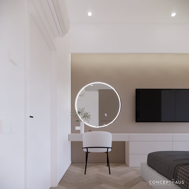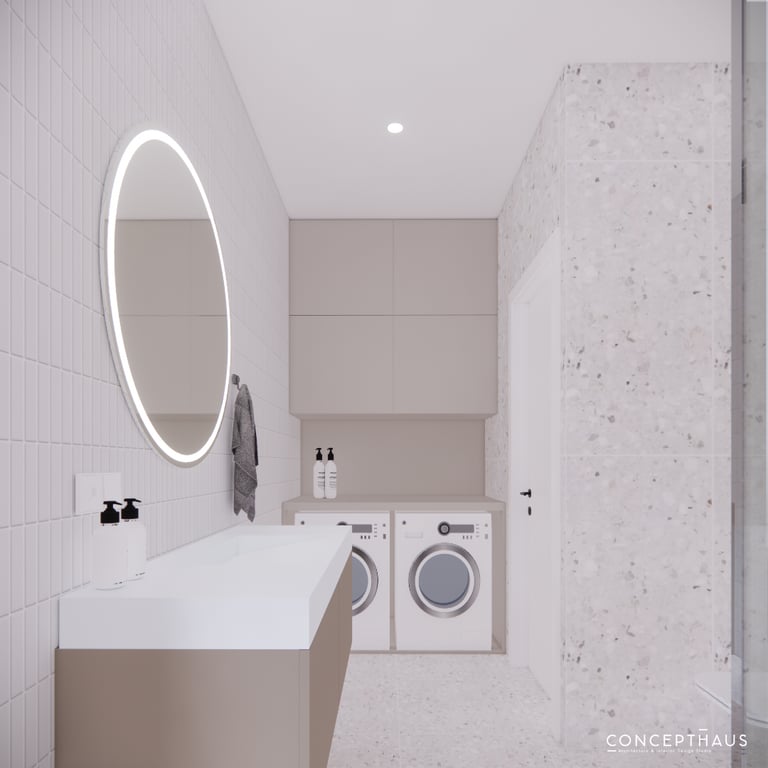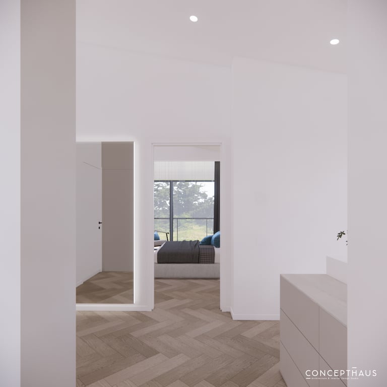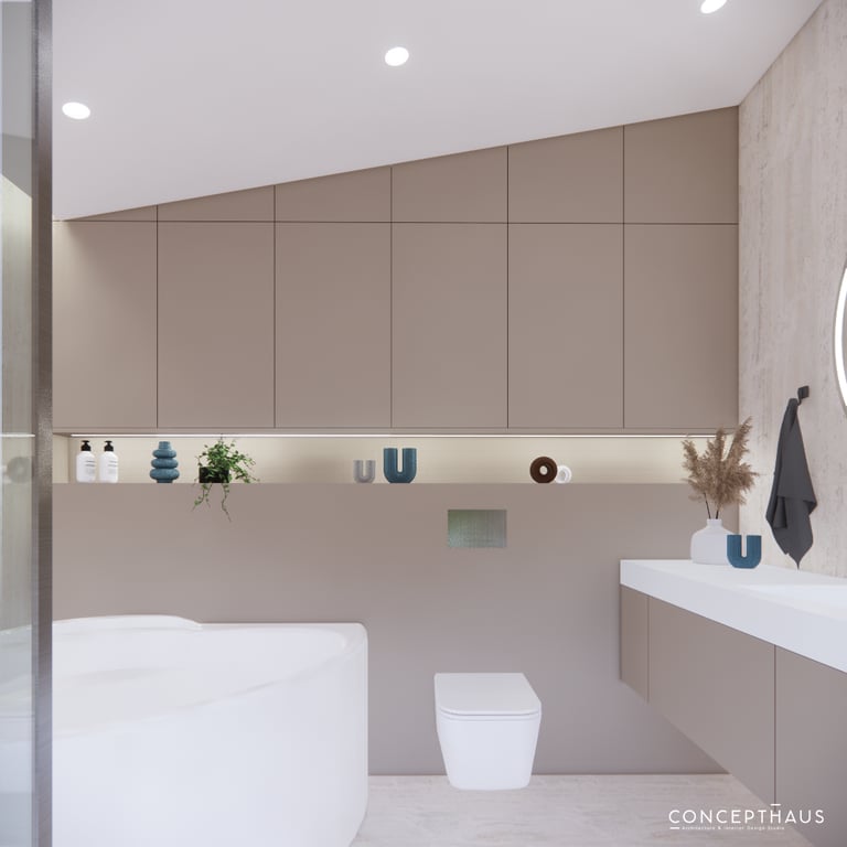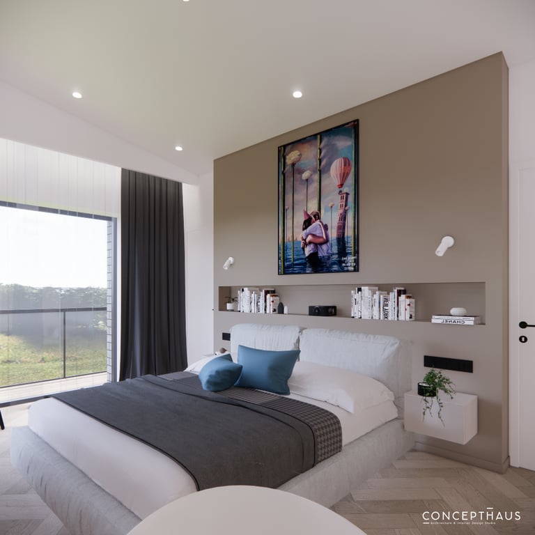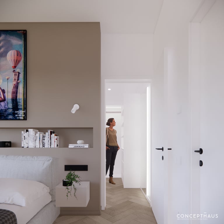Jaukių, šviesių spalvų interjero projektas, kuriame dominuoja žalių bei rudų spalvų akcentai. Užsakovų noras buvo kiekvienoje namų erdvėje įnešti šiek tiek skirtingų spalvų. Interjeras sukurtas šeimai su dviems vaikais, pagal kurių poreikius bei pomėgus buvo suplanuoti jų spalvingi kambariai.