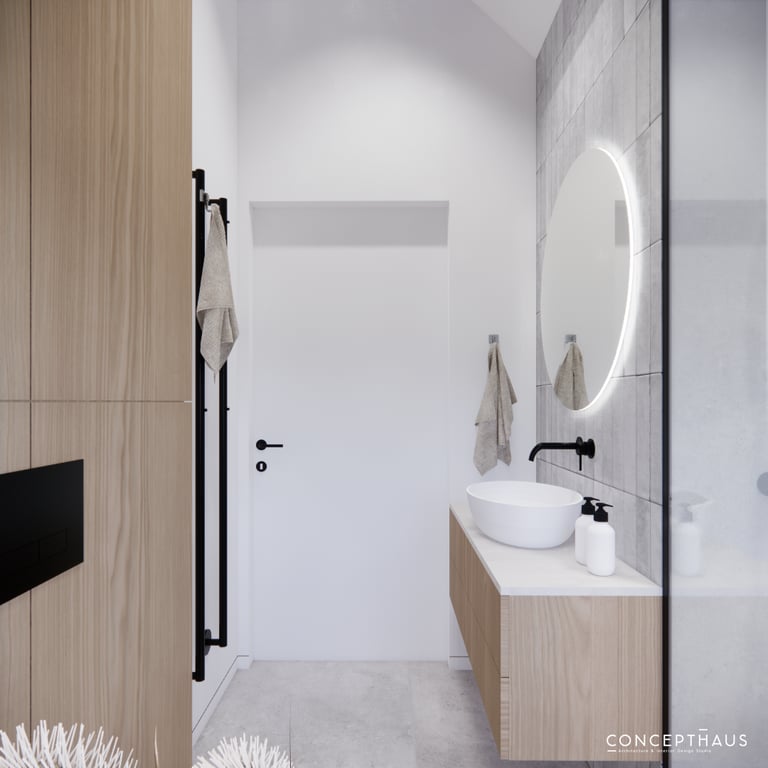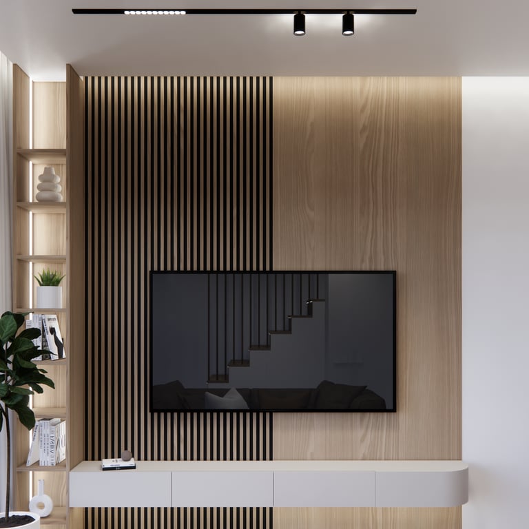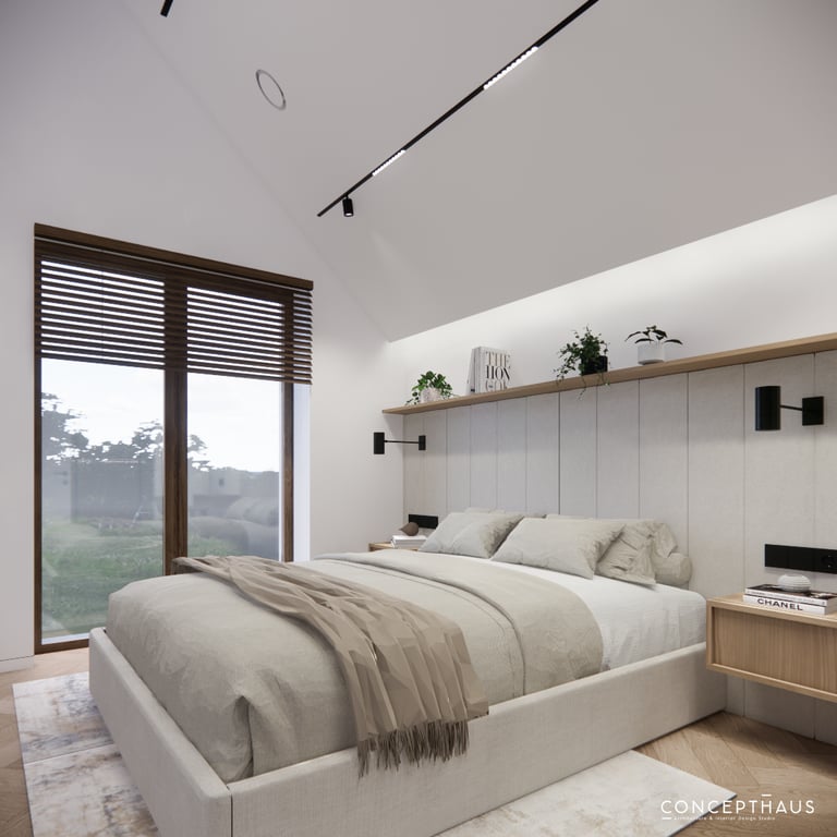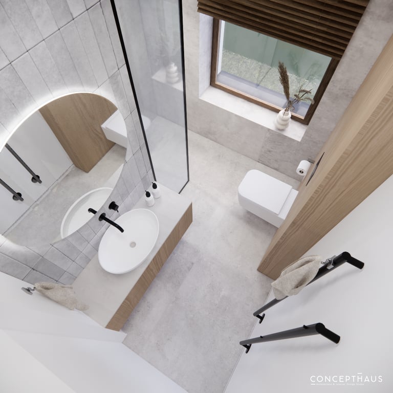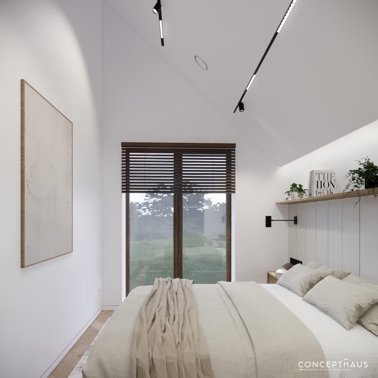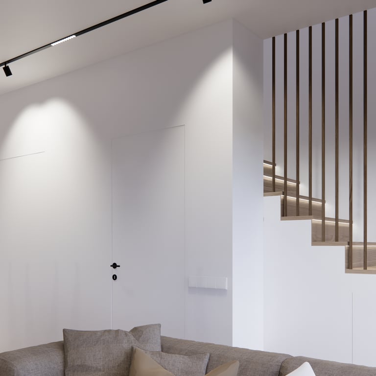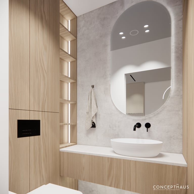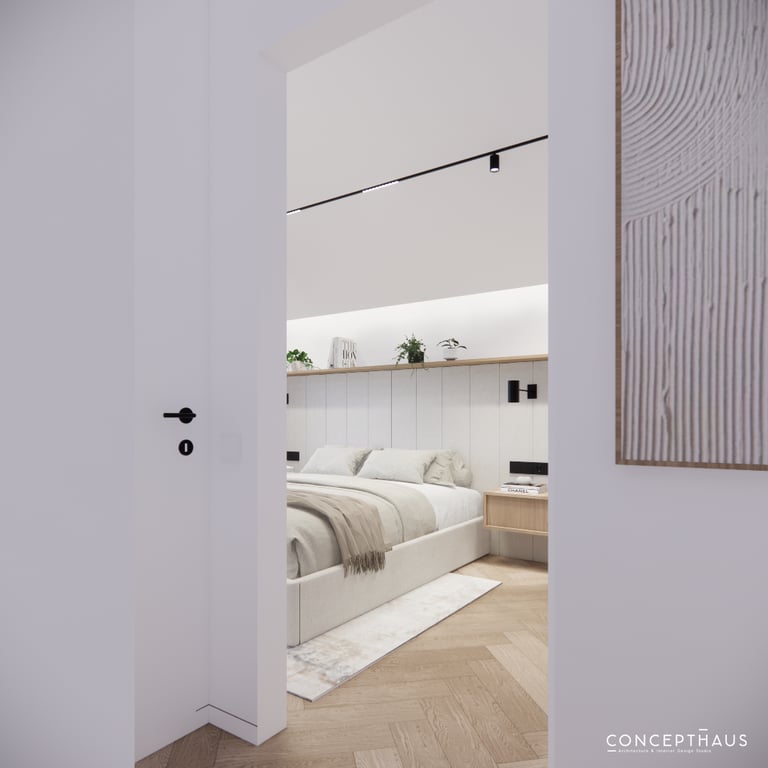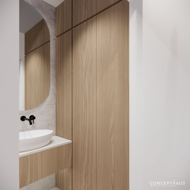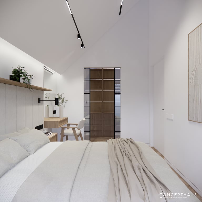 Interjero projektas, kuriame dominuoja medis, apvalios, lenktos formos ir šviesios spalvos. Interjeras sukurtas porai namuose norinčiai turėti patogią darbo zoną dviems asmenims.