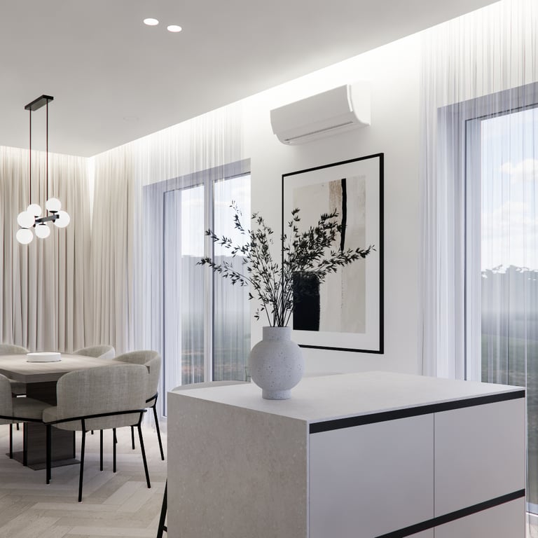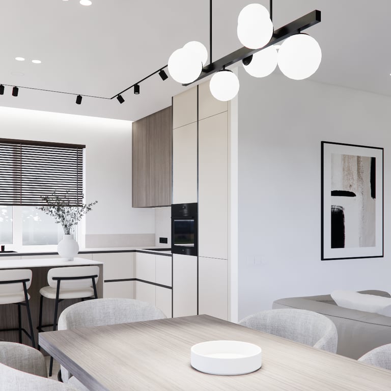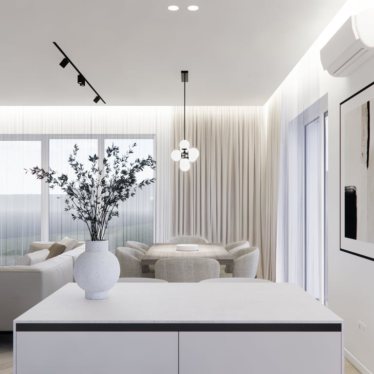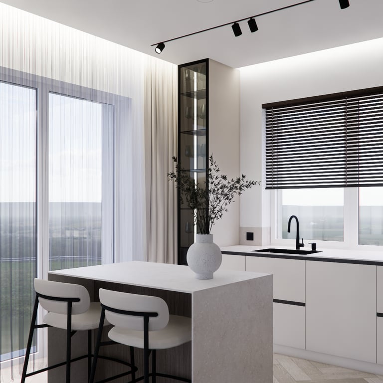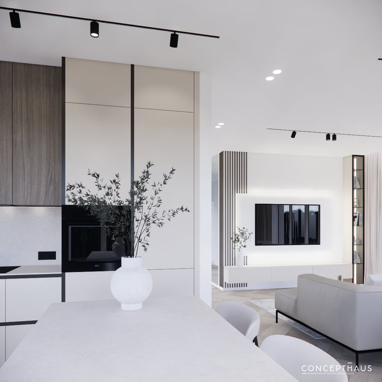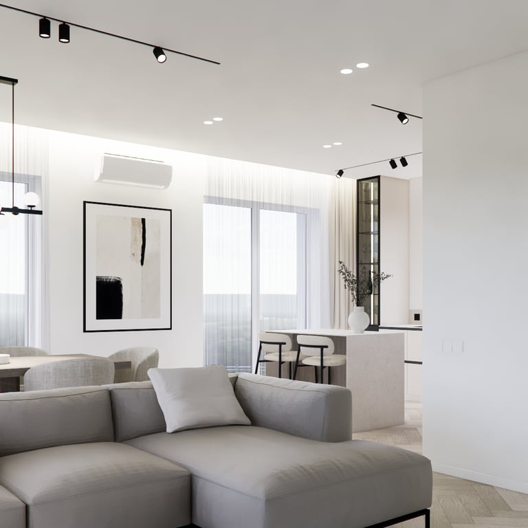 Solidus, monochrominių spalvų interjero projektas. Interjere daugiausiai naudojamos šviesios spalvos, žemiški tonai ir jaukumo suteikiantys medinių bruselių motyvai. Siekiant projektui suteikti šiek tiek kontrasto naudojamos juodos detalės ir tamsinto stiklo vitrinos.