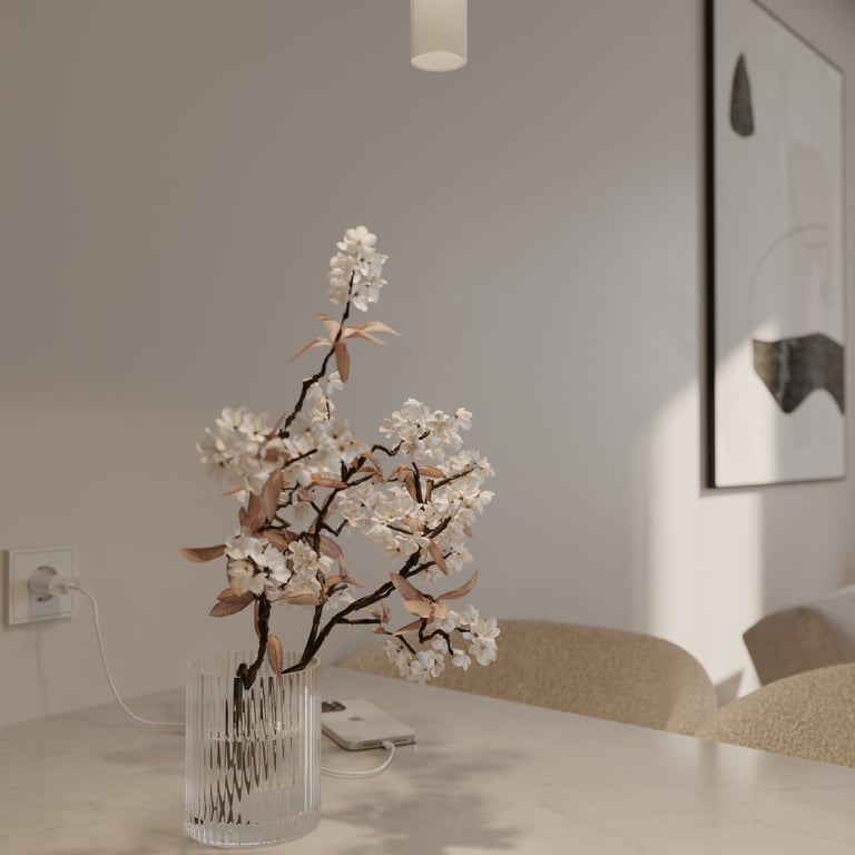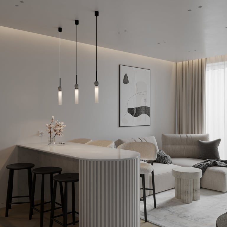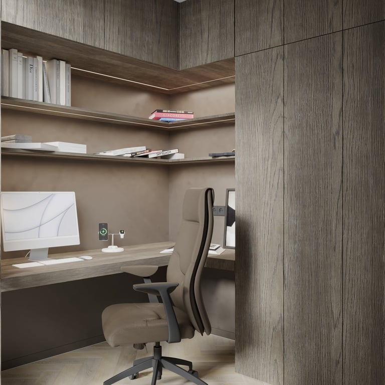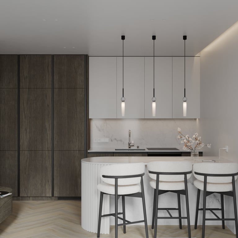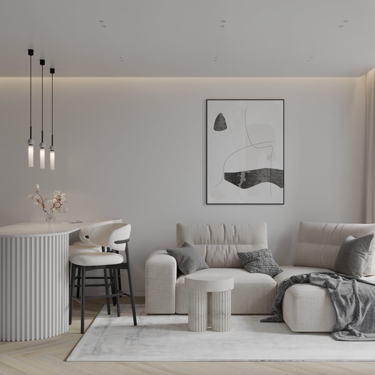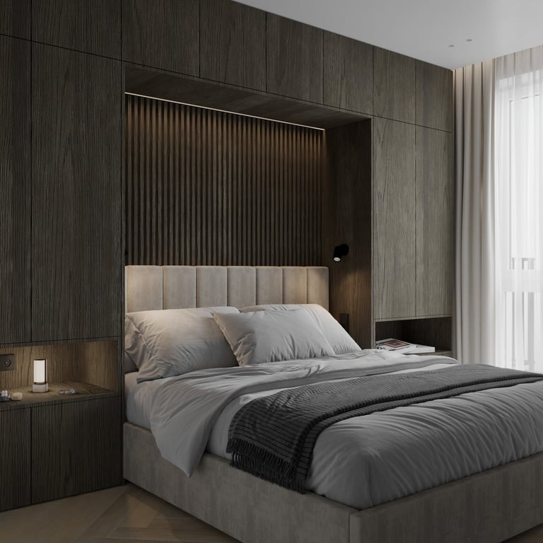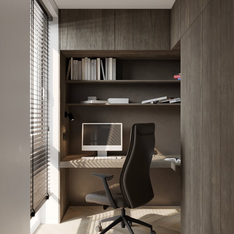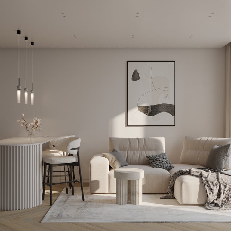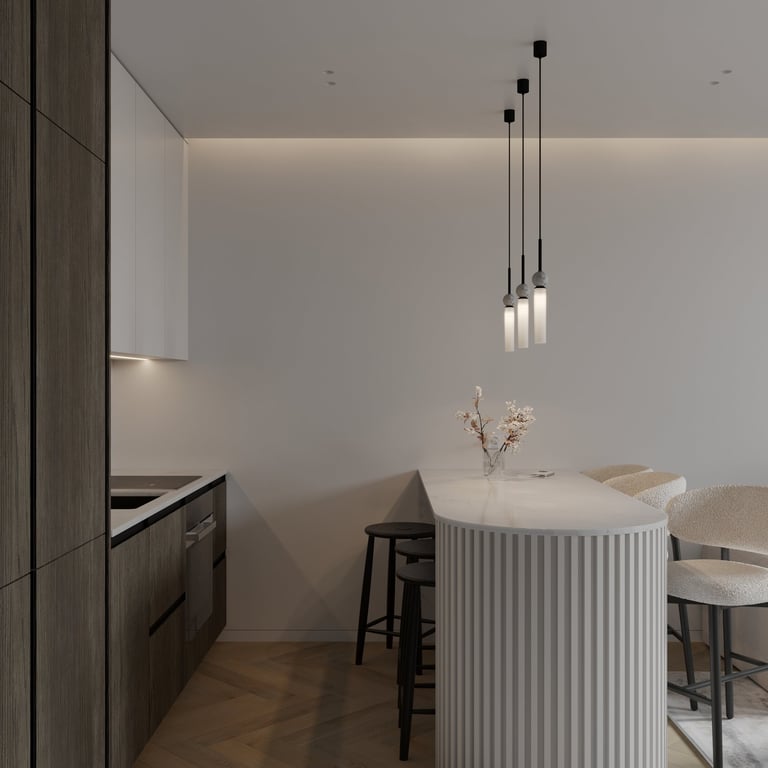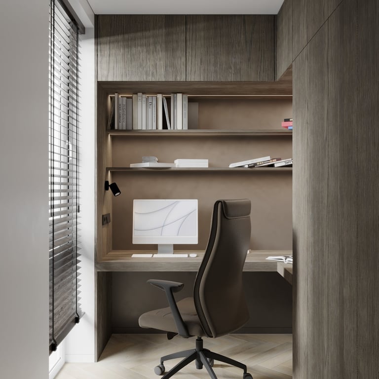 Nedidelis, bet jaukus dviejų kambarių buto interjeras, su maksimaliai išnaudotimis namų erdvėmis. Visame bute numatyta nemažai papildomų vietų daiktų laikymui. Koridoriaus zonoje suprojektuota vientisa holo ir virtuvės spinta. Miegamajame suprojektuota spinta aplink ir virš lovos, suformuojant jai jaukią nišą. Vietoje drabužinės numatyta patogi darbo vieta su papildomomis zonomis daiktų, drabužių laikymui. Virtuvėje vietoje stalo suplanuota sala su 6 pusbario kėdėmis, tam, kad būtų naudojama ne tik maisto gaminimui, bet ir jaukiems vakarams su kompanija.