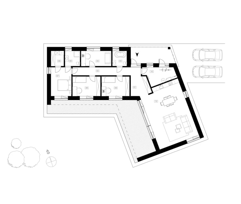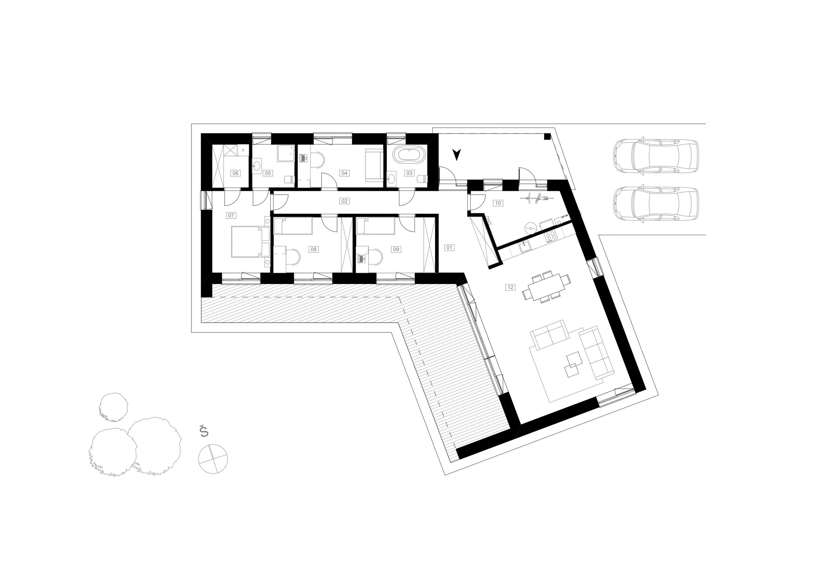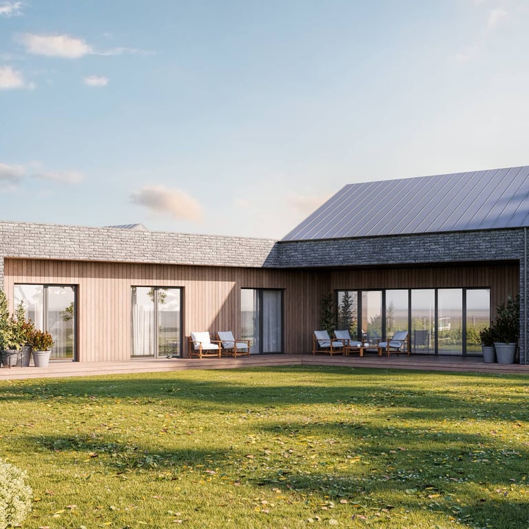 Tai vieno aukšto, gyvenamojo namo projektas, suplanuotas 18 sklypų kvartalui. Projektuojant siekėme būsimiems gyventojams sukurti kuo daugiau komforto, privačių gyvenamųjų ir bendrų poilsio erdvių. Todėl visas pagrindines gyvenamąsias patalpas ir jų langus bei terasas orientavome tik pietryčių arba pietvakarių kryptimis tarp pastatų išlaikant maksimalų galimą atstumą. Būtent dėl šių priežasčių pastatų architektūra įgavo kiek nestandartinę, „laužtą L“ formą, kuriančią daugiau privatumo ir jaukumo terasose bei vidiniuose kiemuose, ir daugiau saulės šviesos visose pagrindinėse gyvenamosiose namų erdvėse.