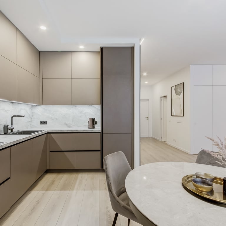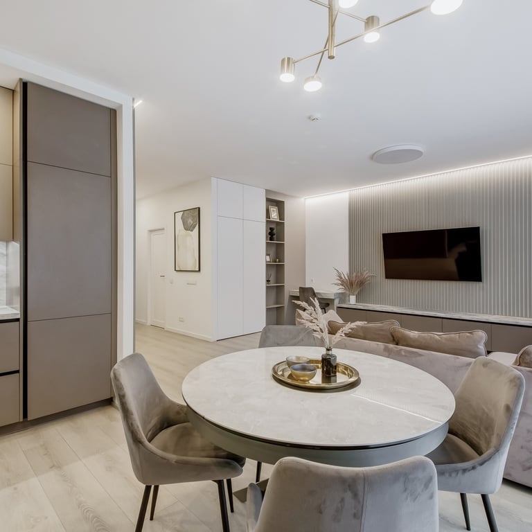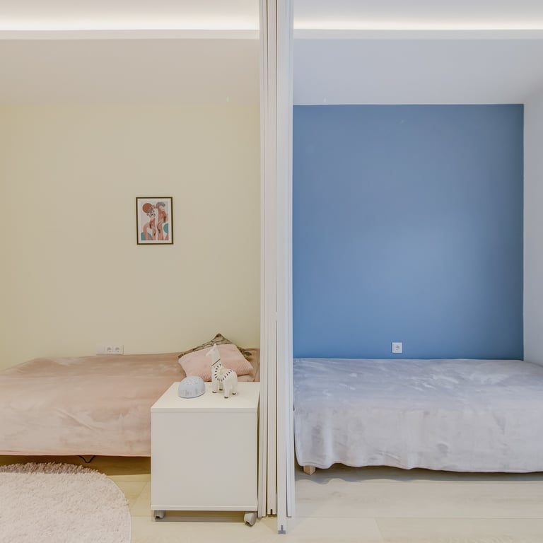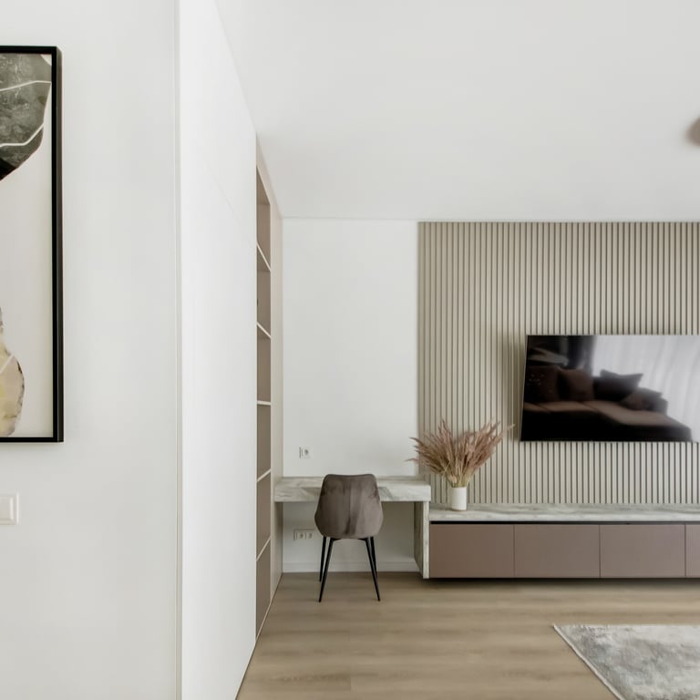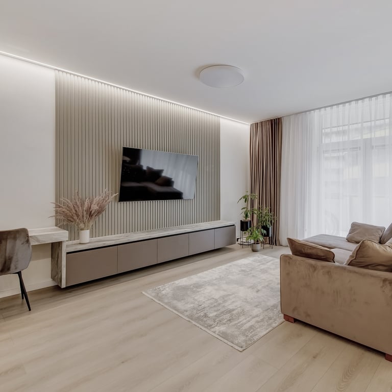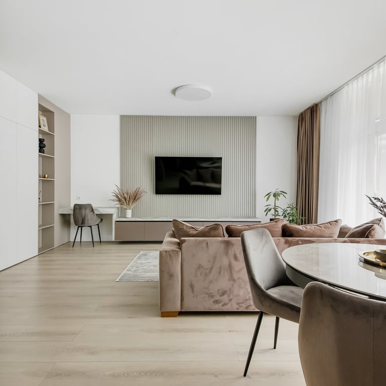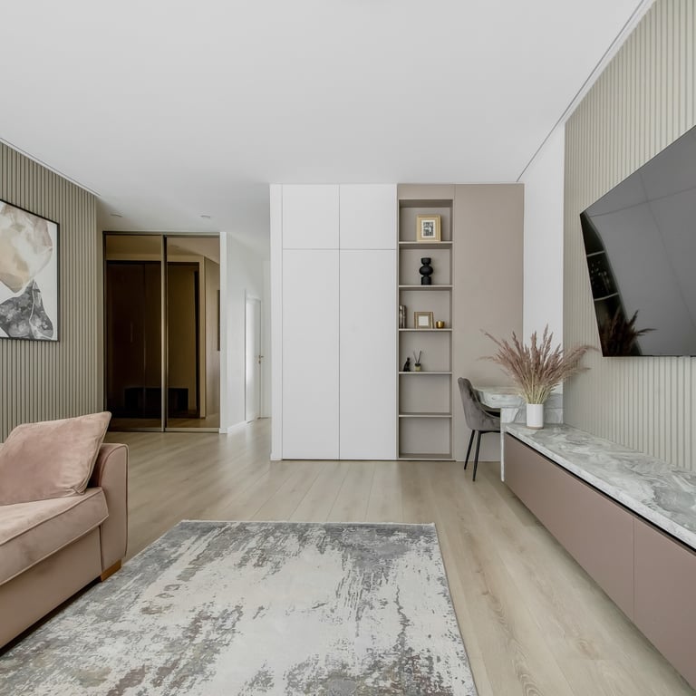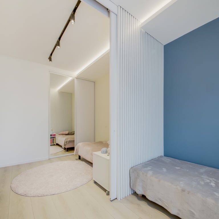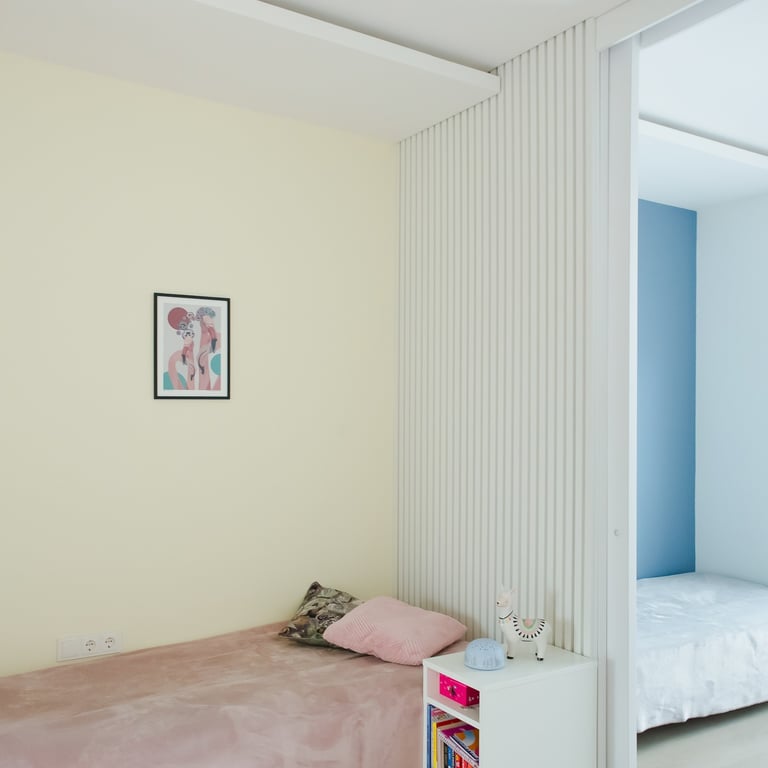 Šio projekto rengimo metu, atižvelgiant į užsakovų poreikius, rengėme DETALŲ buto interjero projektą, pilnai atnaujinant visą esamą buto interjerą. Pagrindinis mūsų tikslas buvo sukurti jaukius, šviesius, harmoningus namus bei, trijų kambarių bute be pagrindinės erdvės ir tėvų miegamojo, viename iš kambarių suplanuoti kuo privatesnes zonas dviems vaikams.